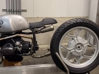 Fully built BMW R100 with cognimoto billet triple clamp, sanded tank, LED front light, chopped and newly welded subframe, custom full stainless steel pie cut exhaust with 94 different individually welded sections with dual akrapovic mufflers.